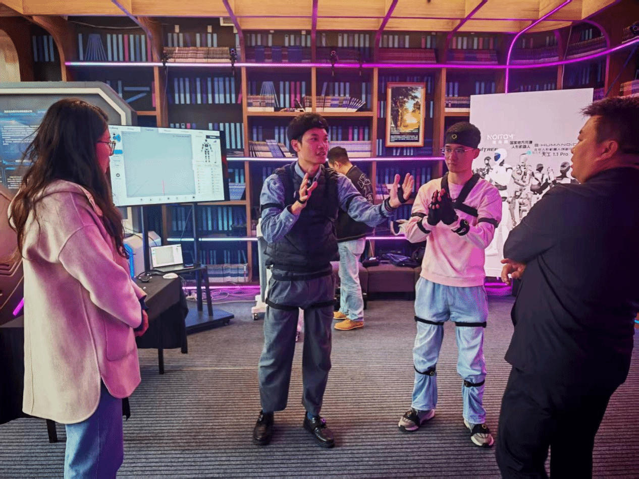 活动伊始,学院代表团实地参观了北京诺亦腾科技有限公司的展厅,深入了解了其在惯性动作捕捉、光学追踪以及体育健康解决方案等领域的前沿技术成果与实际应用。